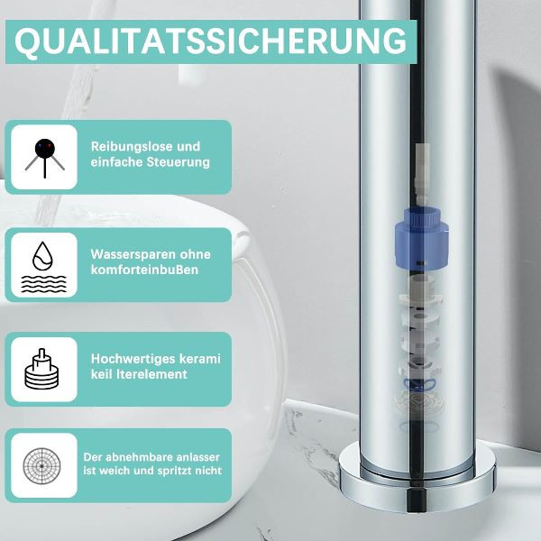 اهرم تککاره آن با یک کارتریج سرامیکی درجه یک تغذیه میشود. این به معنای حرکت نرم و دقیق اهرم برای تنظیم دما و فشار، و حذف کامل چکه تا سالیان متمادی است.