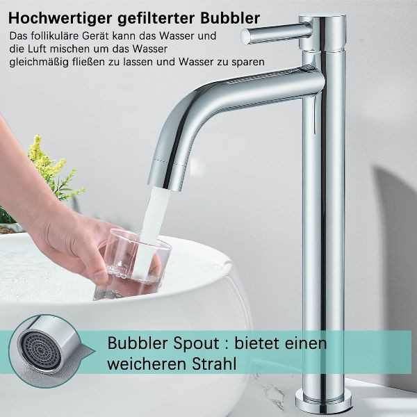 س: آیا این شیر برای روشوییهای معمولی (سینک توکار) هم مناسب است؟ ج: خیر، به دلیل ارتفاع بلند، این شیر به صورت تخصصی برای روشوییهای کاسهای طراحی شده است. استفاده از آن روی سینکهای توکار باعث پاشش بیش از حد آب خواهد شد.