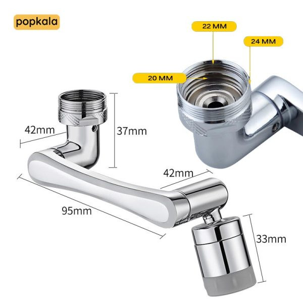 این سر شیر به گونهای طراحی شده که با استفاده از آداپتورهای همراه، به راحتی و بدون نیاز به ابزار خاص، روی تقریباً تمام شیرآلات استاندارد سینک ظرفشویی و حتی روشویی نصب میشود.