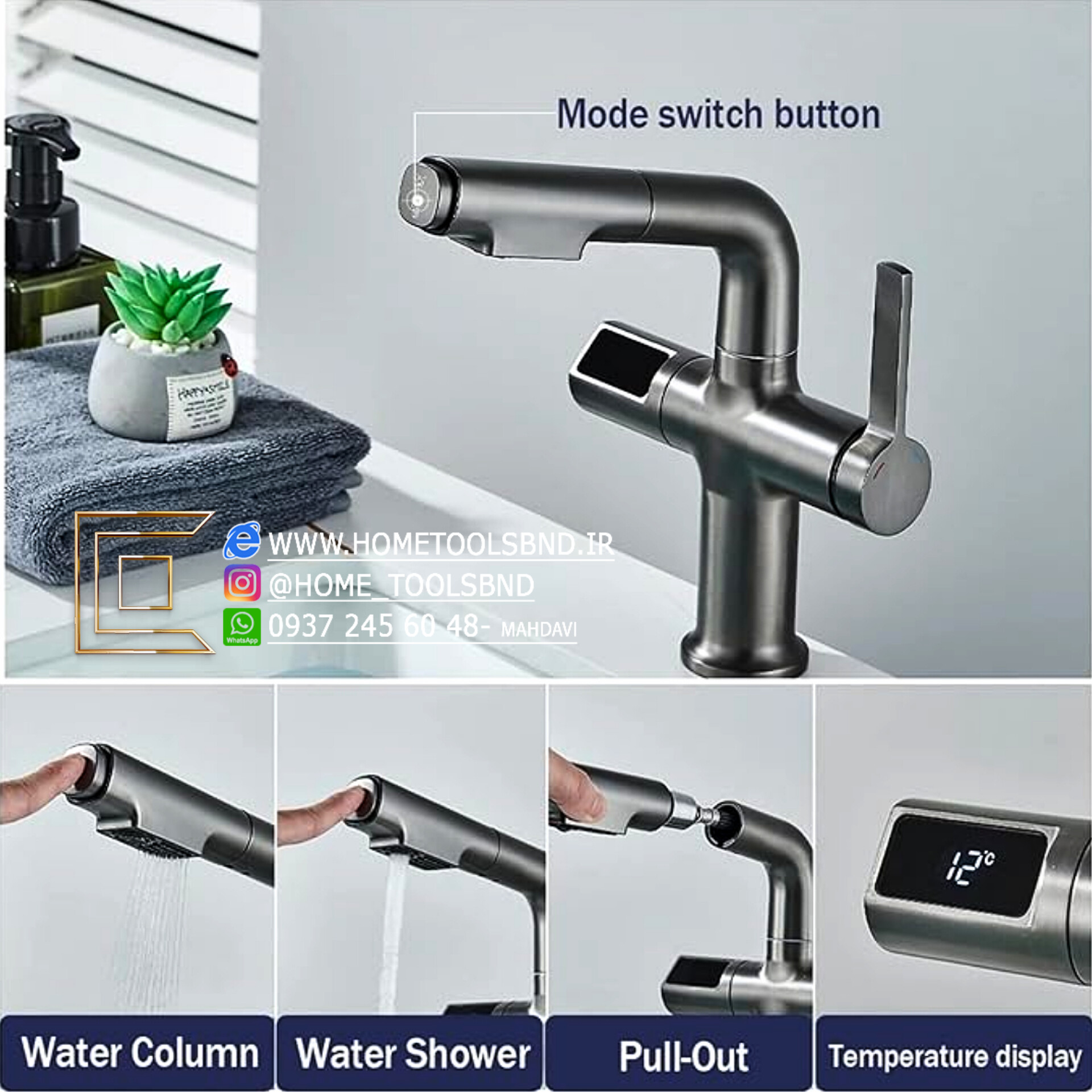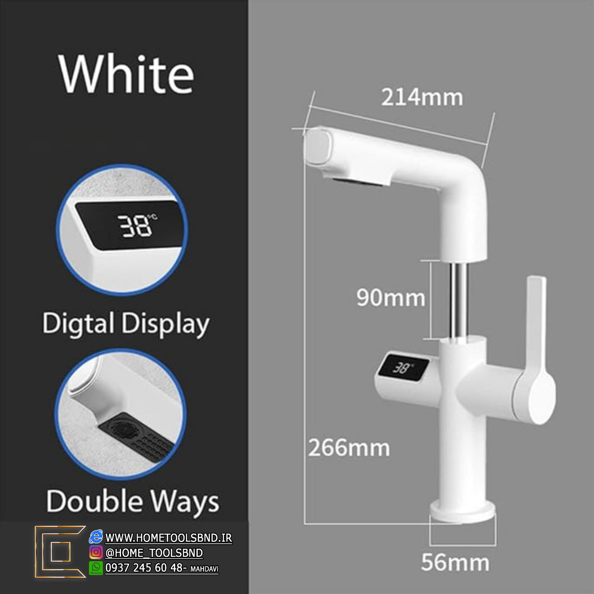 | ماهیت محصول | شیر روشویی دیجیتال دار قابل تنظیم ارتفاع |