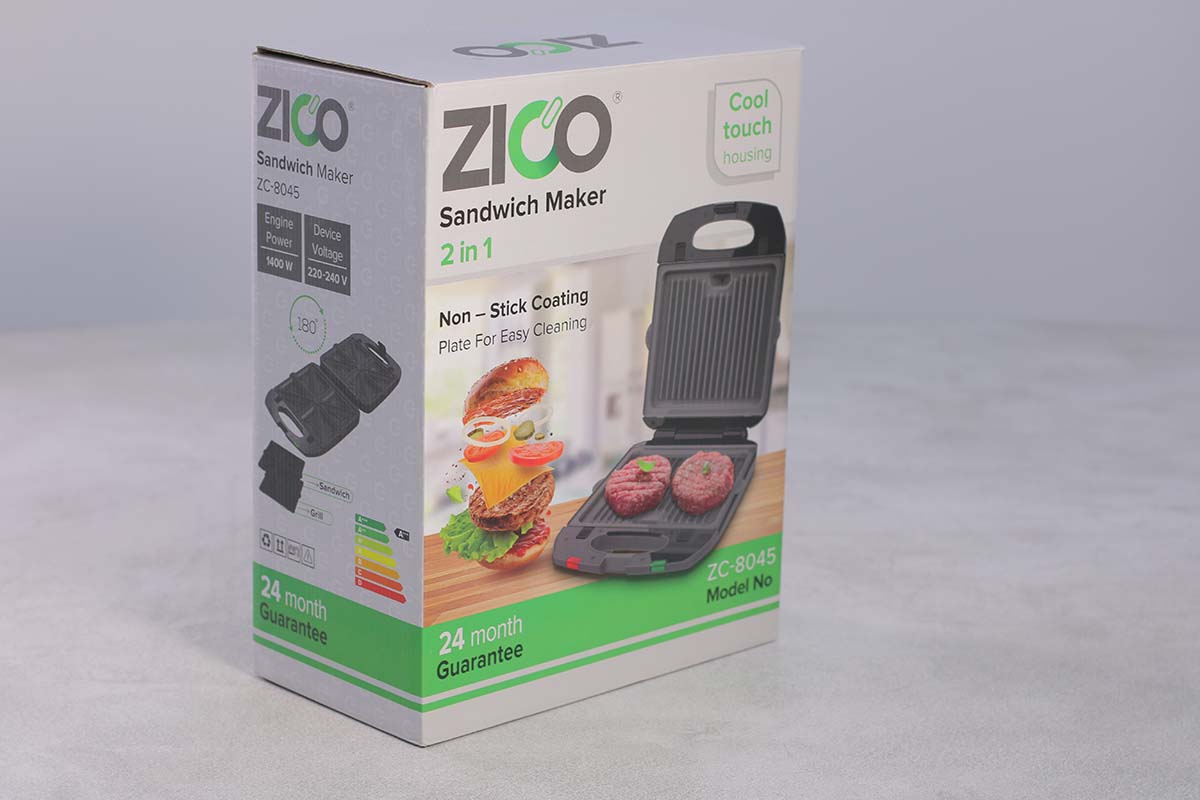 ساندویچ ساز و گریل دوکاره زیکو مدل ZC-8045 | 4 ساندویچ همزمان + صفحه گریل حرفهای برای کباب خانگی
