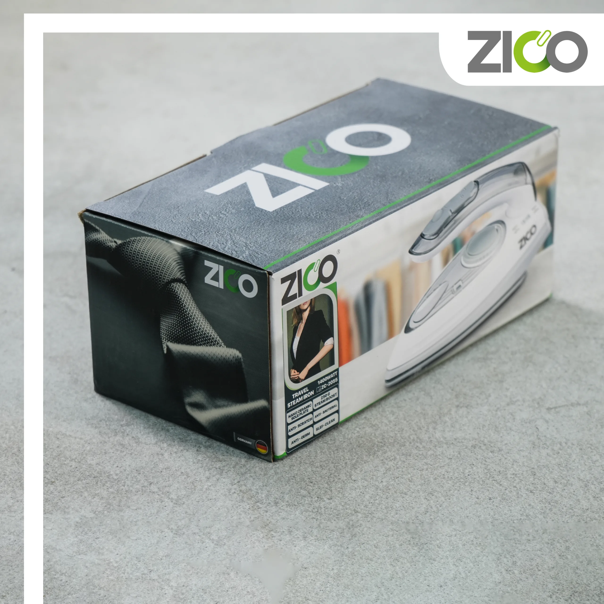 اتو مسافرتی زیکو مدل ZC-2055 یک اتو بخار ۱۴۰۰ واتی با دسته تاشو و کفی نانو سرامیک است. این دستگاه با قدرت بخار ۲۵۰ گرم و ابعاد کوچک بهترین گزینه برای از بین بردن سریع چروک لباس ها در سفر بدون آسیب به بافت پارچه می باشد.