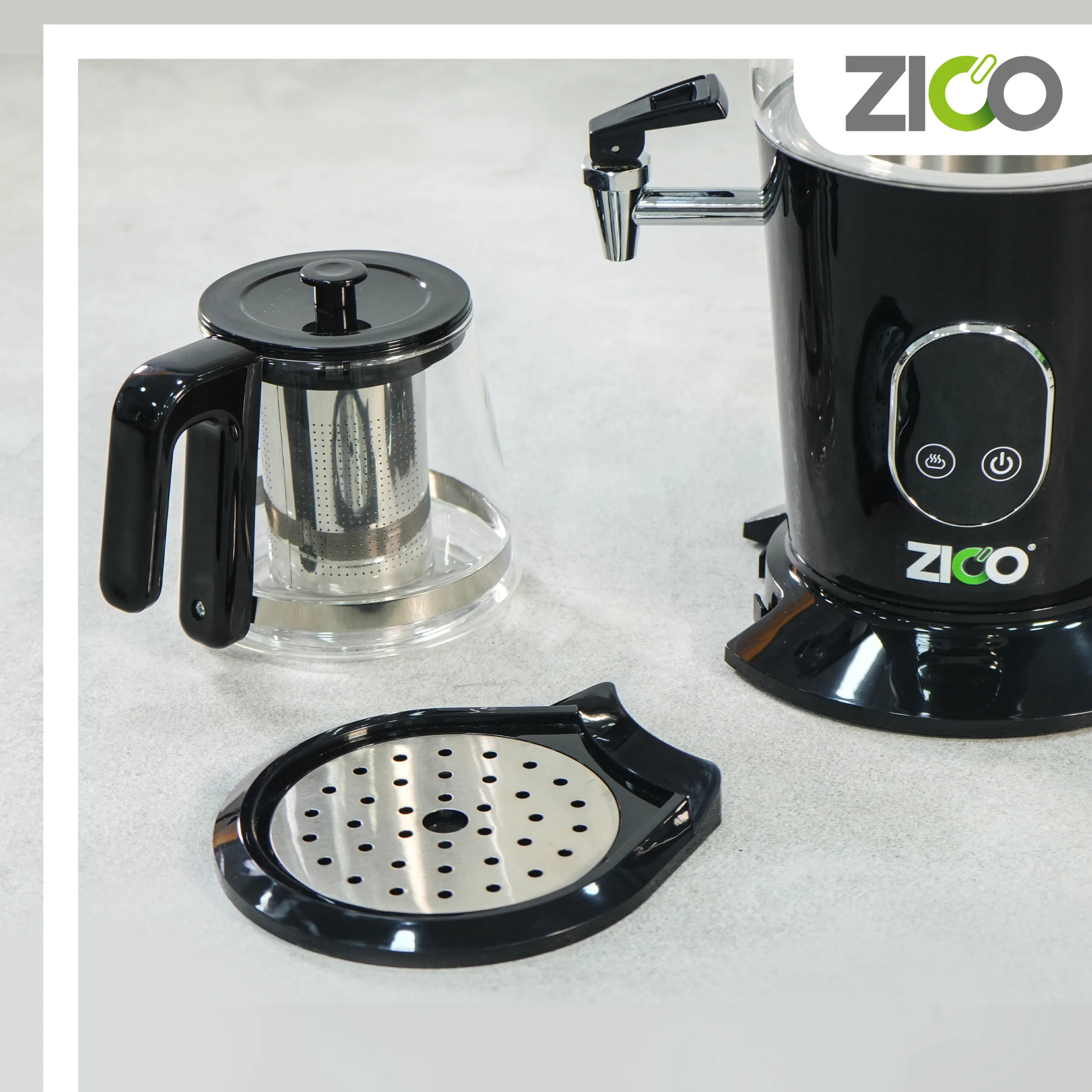سماور برقی ZC-4220 یک سماور شیشهای دیجیتال با توان 2200 وات، مخزن 3 لیتری، قوری 1 لیتری، قابلیت کنترل دما، سیستم گرم نگهدارنده و سنسور قطع کن خودکار است که برای تهیه سریع و آسان چای طراحی شده است.